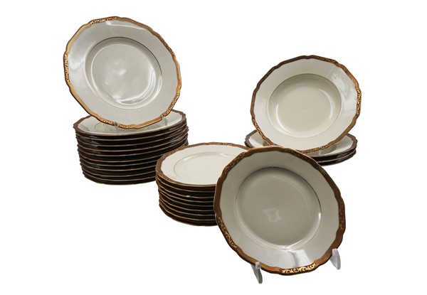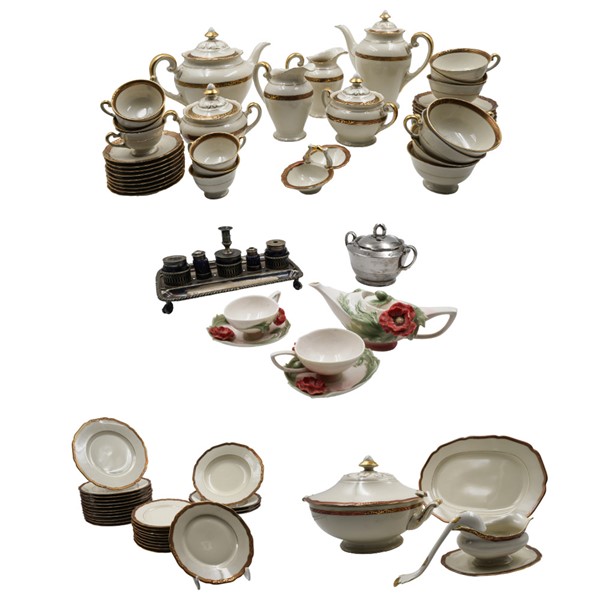 Manifatture differenti. Tre cartoni contenenti parti di servizi in ceramica di