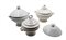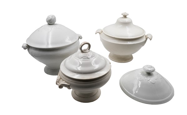 Manifatture differenti, tra cui Ginori. Lotto composto da tre zuppiere diverse con coperchi unite ad un coperchio in porcellana e terraglia bianca (h max cm 30) (difetti e rotture)
