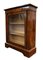 Vetrina a tre ripiani impiallacciata in noce con filettature e piccoli intarsi,