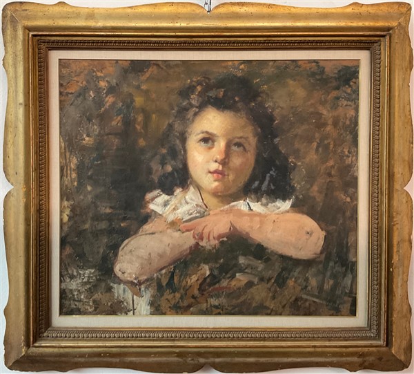 Pacifico Sidoli "Ritratto di fanciulla" olio su cartone (cm 53x69) in cornice (