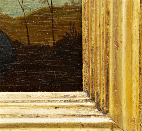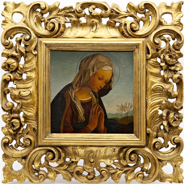Ignoto del secolo XX "Vergine orante" olio su compensato (cm 23x23) reca mon