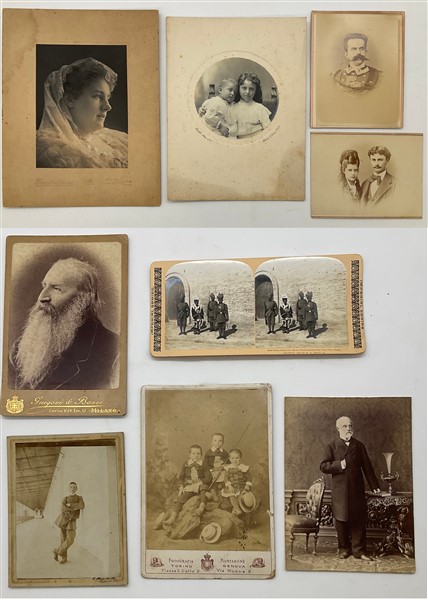 Lotto di nove stampe fotografiche con differenti ritratti, fine secolo XIX - in