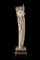 Grande scultura in avorio raffigurante guerriera con freccia e spada legata alla vita, la figura ben intagliata e elegantemente vestita con un’armatura, abbellita con teste di feroci animali, base in legno (difetti)