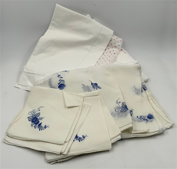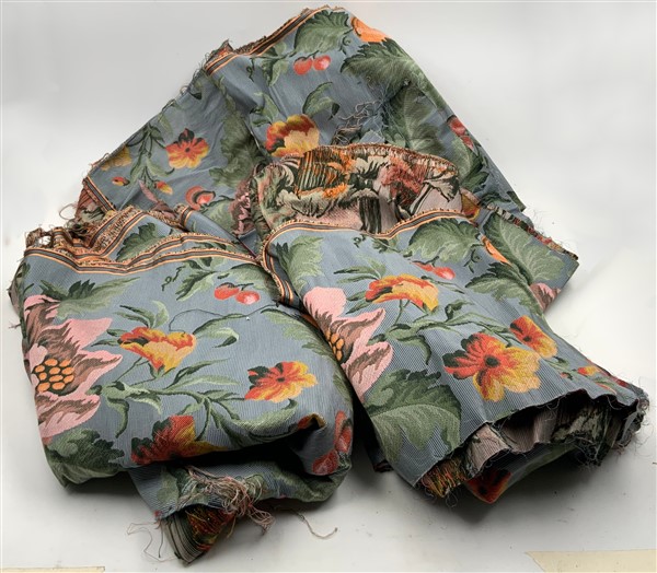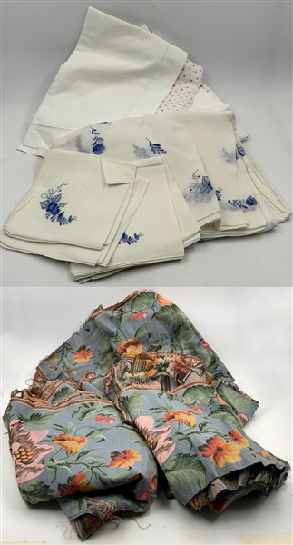 Cartone contenente lenzuola e ritagli di tessuti d'arredo (difetti)