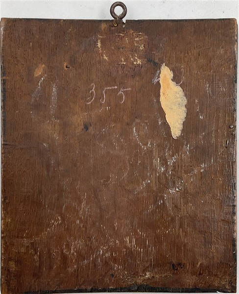 Manifattura di Malines, secolo XVII. La Vergine con Bambino e Sant'Anna. Rilievo in alabastro con lumeggiature in oro (cm 12x10) In cornice antica (cm tot 22x19) (difetti e restauri).