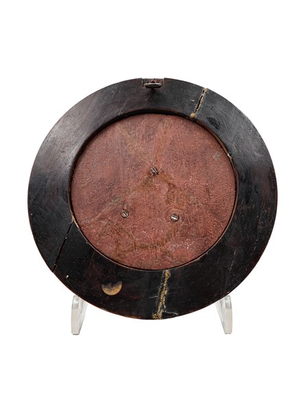 Busto di Francesco Primaticcio in alabastro su medaglione a rilievo iscritto e datato 1553, in cornice in legno ebanizzato, intagliato e dorato (d. cm 13) (difetti e rotture)