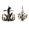 Lotto composto da due lampadari in ferro e lamierino dipinto di cui uno a dieci