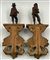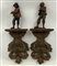 Arte veneta, secolo XVIII-XIX. Coppia di figure in legno intagliato e laccato (h cm 20 e 20,5) applicate su mensola in legno argentato (h tot. cm 50) (difetti e restauri)