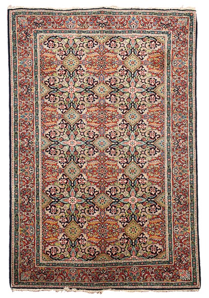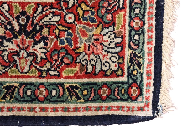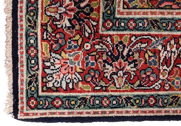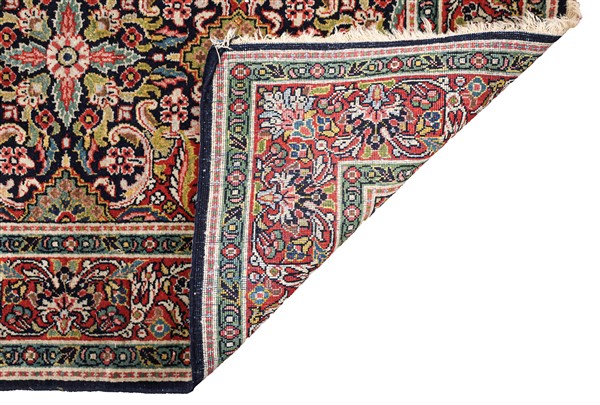 Tappeto Keshan, Persia, secolo XX. Decoro floreale all over su fondo blu notte (cm 208x129) (lievi difetti)