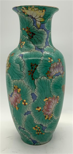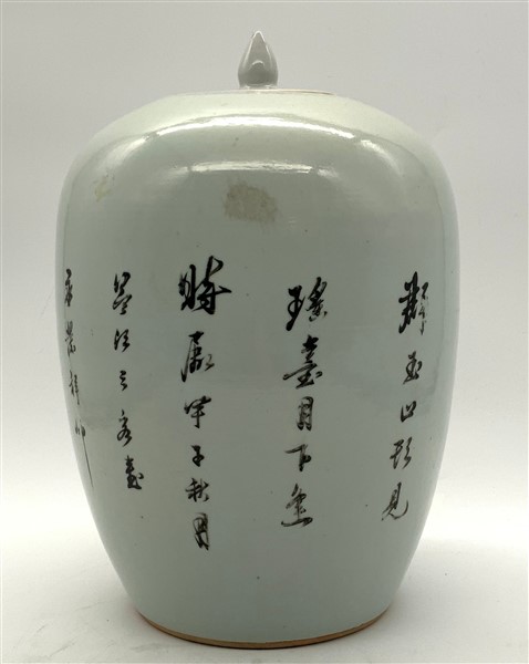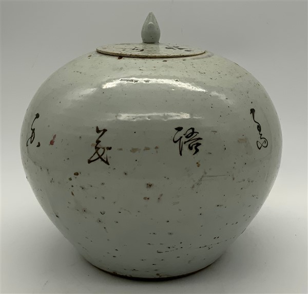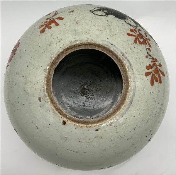 Lotto composto da due potiche con coperchio, un vaso sangue di bue e un vaso verde con farfalle. Cina, secolo XIX-XX (h max cm 36) (difetti e restauri)