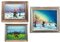 Lotto composto da tre dipinti naif ad olio su vetro raffiguranti paesaggi, di misure diverse (misure max cm 40x50) firmati e datati in basso, fine anni '60 inizio anni '70
