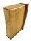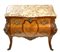 Cassettone bombato e impiallacciato con decori ad intarsio in legni vari a moti