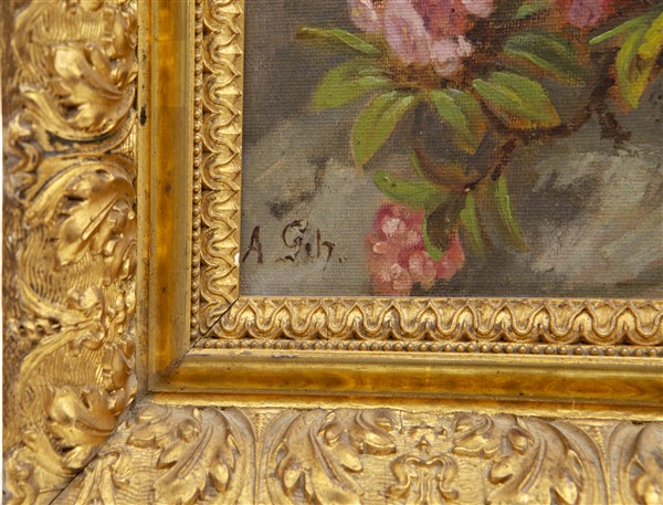Lotto composto da due "Composizioni con fiori", di diversi autori, (cm max 51 x 34), di cui uno monogrammato e l'altro firmato e datato