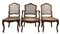 Lotto composto da cinque sedie e una poltrona in legno intagliato con sedute e schienale in paglia di Vienna, bordure scanalate e decorate a motivo floreale, gambe mosse. Secolo XVIII (difetti)