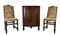 Lotto composto da un antico cantonale in noce ad un'anta (cm 50x97x50) e coppia di sedie in noce con gambe e traverse tornite a rocchetto. Secolo XVIII. (difetti e restauri)