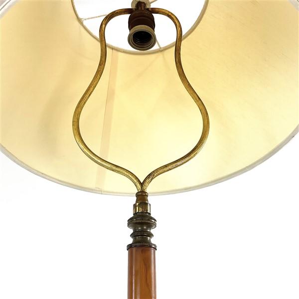 Piantana con struttura in bachelite e ottone, paralume non coevo in tessuto bia