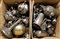 Lotto composto da numerosi antichi oggetti in peltro, metallo argentato e altri metalli. In due cartoni (difetti)