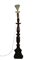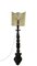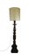Antica torciera in legno intagliato con base tripode (h cm 140) adattata a lampada in epoca successiva con paralume (h. cm tot 187) (difetti)