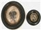 Lotto composto da due verre-peint e due teche contenenti fregio fatto con capel