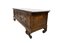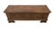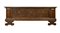 Cassapanca in noce e legni vari con fronte decorato da motivi stilizzati a rilievo, piedi anteriori a volute. (cm 158x55x47) (difetti)