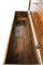 Cassapanca in noce e legni vari con fronte decorato da motivi stilizzati a rili
