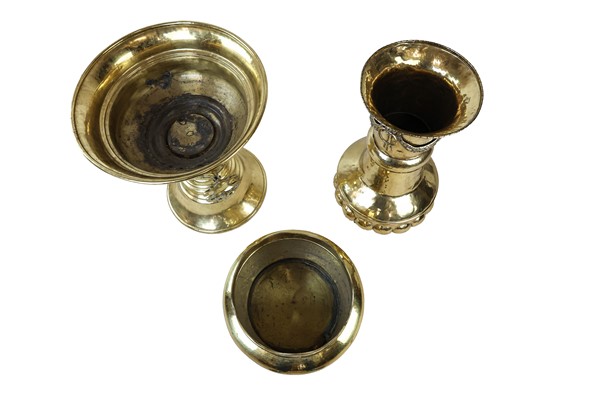 Lotto composto da due vasi e un braciere in ottone, braciere con anse basculant