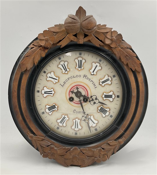 Quadrante in alabastro con cartouches a numeri romani, firmato "Leopoldo Rospini Como".