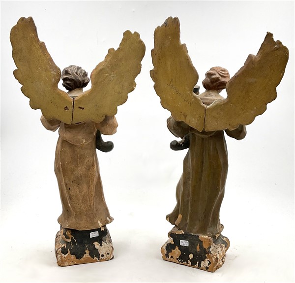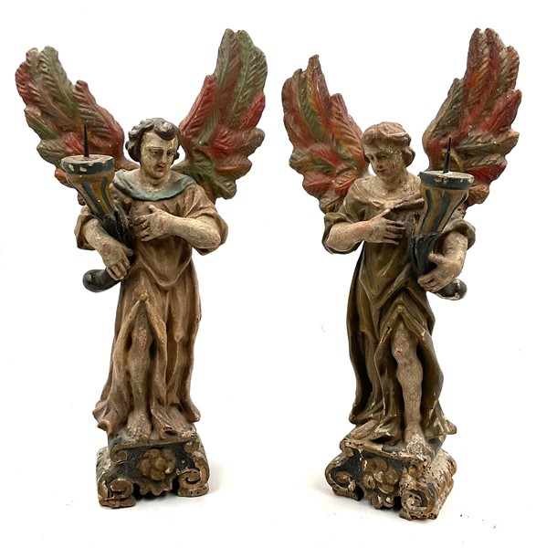 Lot 1318 | Coppia di angeli reggicero in legno intagliato e laccato in policromia. Secolo