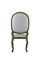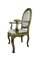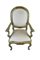 Poltrona in legno intagliato, laccato e dorato con schienale a medaglione, brac