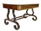 Scrittoio da centro in mogano con gambe a volute contrapposte riunite da traver