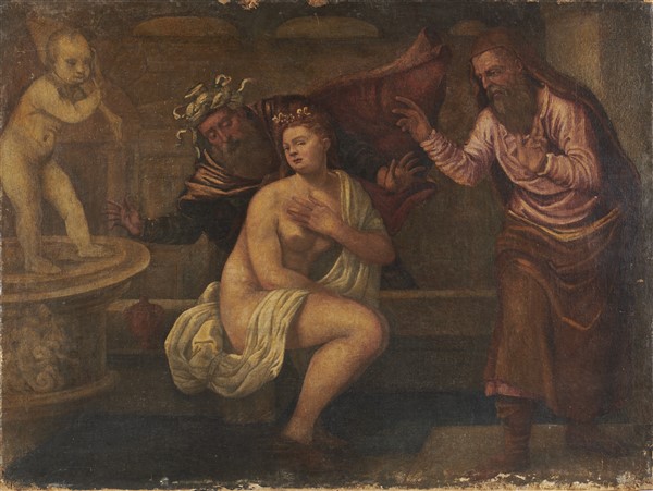 Scuola veronese della fine del secolo XVI "Susanna e i vecchioni" olio su tela