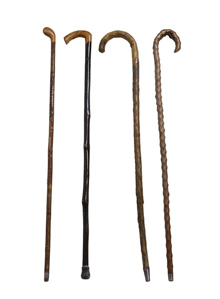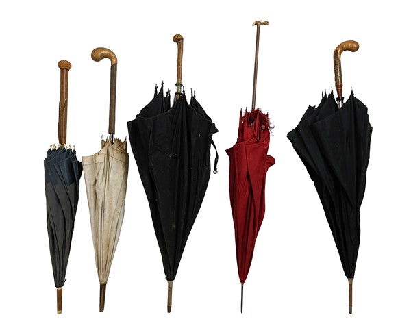 Mobiletto porta bastoni in noce con piano ribaltabile, (cm 155x80x40) contenente diversi bastoni ed ombrelli di epoche varie (difetti)