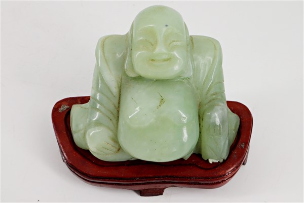 Lotto composto da due intagli in pietra dura raffiguranti Budai e volatile Cin