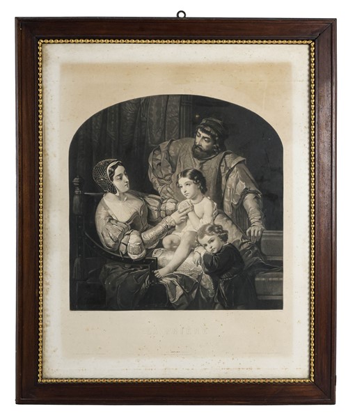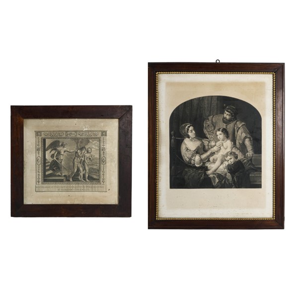 Lotto composto da una grande incisione di Paul Prosper Allais da Édouard Louis Dubufe raffigurante "La Preghiera" e un'acquaforte di P. Bonato da Raffaello di misure differenti