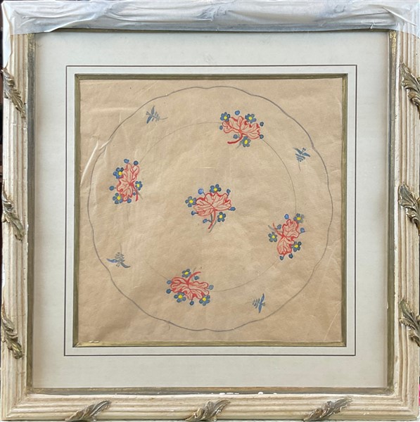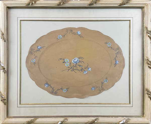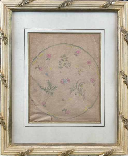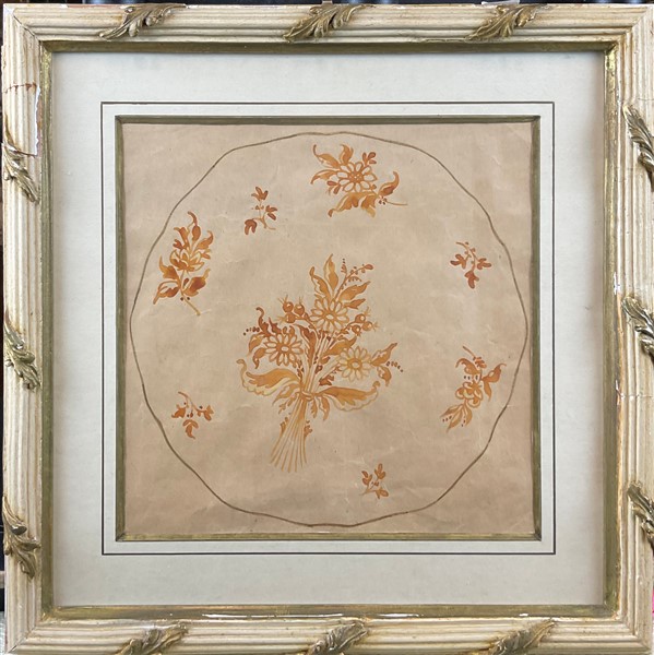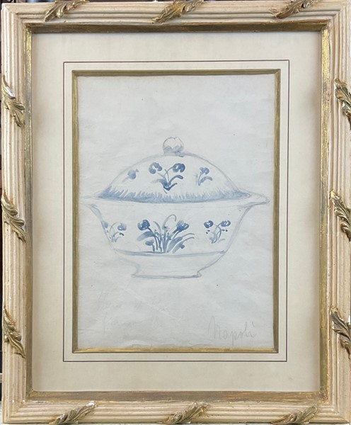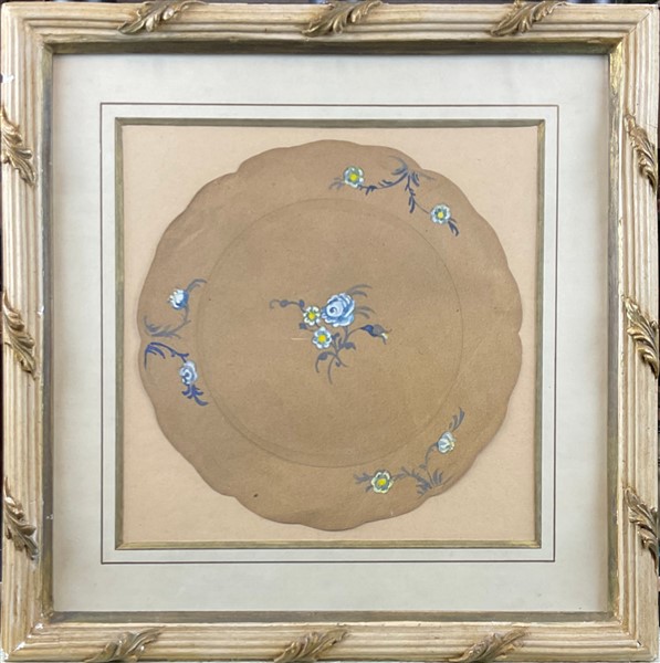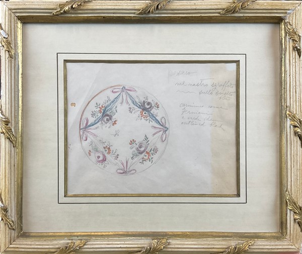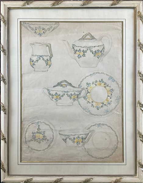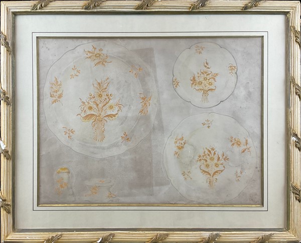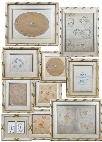 Gruppo di dieci diversi disegni moderni raffiguranti servizi di piatti. Secolo XIX-XX (misure diverse) in cornici (difetti)