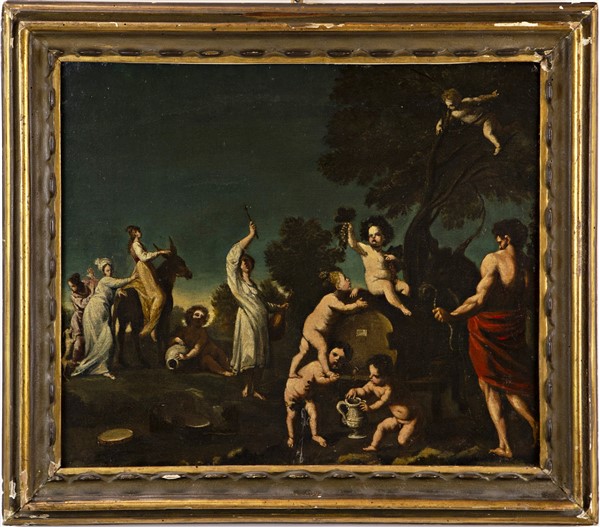 Lot 1489 | Scuola emiliana del secolo XVII "Baccanale" olio su tela (cm 44x52) in cornice