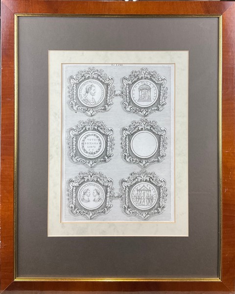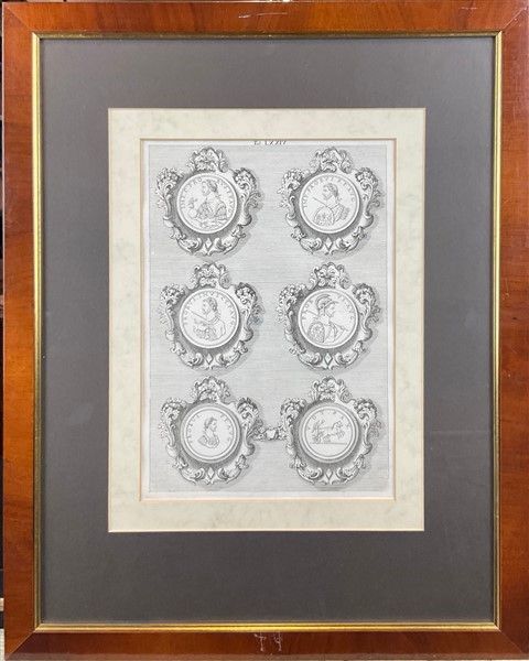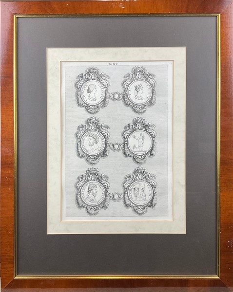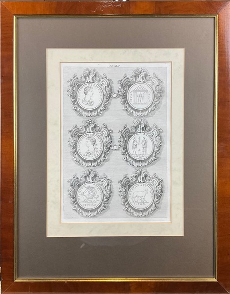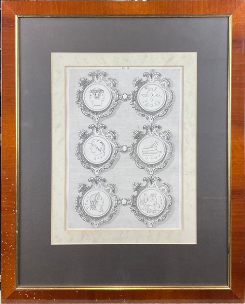 Gruppo di dieci tavole tratte da un'opera libraria del secolo XVIII raffiguranti medaglioni classici
