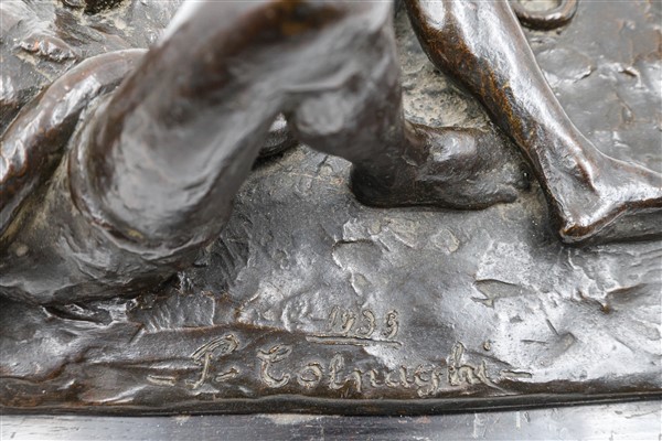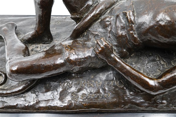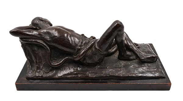 P. Colnaghi "Un brutto sonno" scultura in bronzo su base in legno (cm 36,5x14