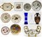 Cartone contenente numerosi oggetti in ceramica e vetro di diversa forma e deco