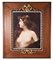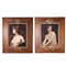 Coppia di cornici in legno con bordura interna a nastro e fiocchi dorati (cm 79x67, luce cm 49,5 x 37,5) contenenti cromolitografie con ritratti femminili (difetti)