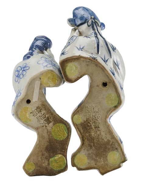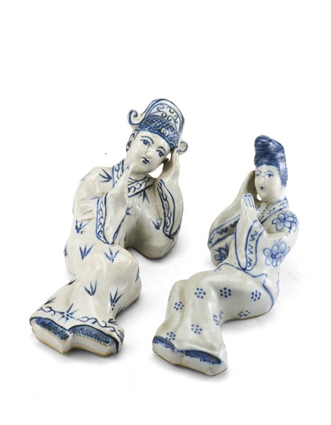 Lot 1550 | Due figure femminili in porcellana bianca e blu. Cina, secolo XIX-XX (h. cm 20)