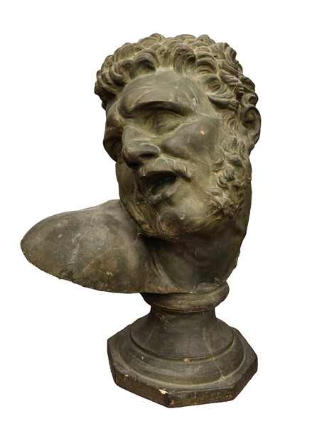 Busto in gesso dipinto su base in gesso, h cm 63 (difetti)