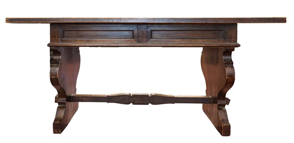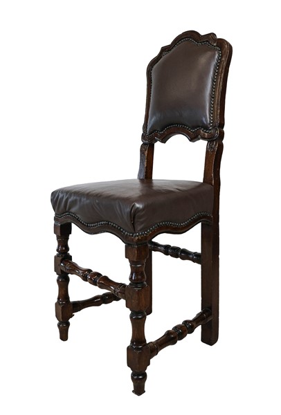 Lotto composto da quattro sedie in noce con gambe e traverse di raccordo tornit