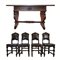 Lotto composto da quattro sedie in noce con gambe e traverse di raccordo tornite a rocchetto, secolo XVIII, sedute e schienali rivestiti in similpelle unite a un tavolo in legni vari con piano rettangolare d'epoca successiva (difetti e restauri)