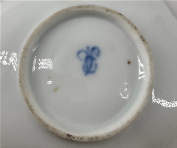Manifattura di Dresda, secolo XIX. Tazzina con piattino in porcellana quadrilob
