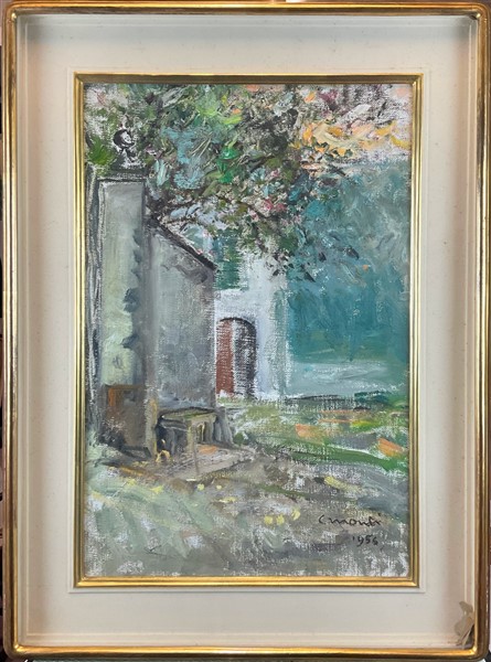 Cesare Monti "Cortile di casa" 1956 olio su tela (cm 63x43) firmato e datato in