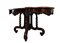 Tavolo da centro in legni vari con piano sagomato e sostegni con colonne tortil