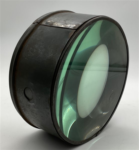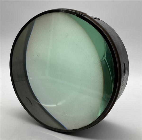 Grande lente da proiettore in cristallo e metallo (d cm 23) (difetti)