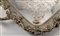Vassoio biansato in metallo argentato con ringhiera traforata, prese e piedi a