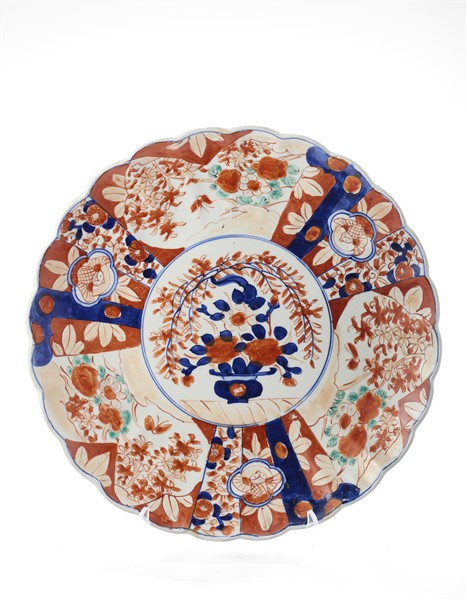 Grande piatto in porcellana Imari. Giappone, secolo XIX (d. cm 42) (difetti)